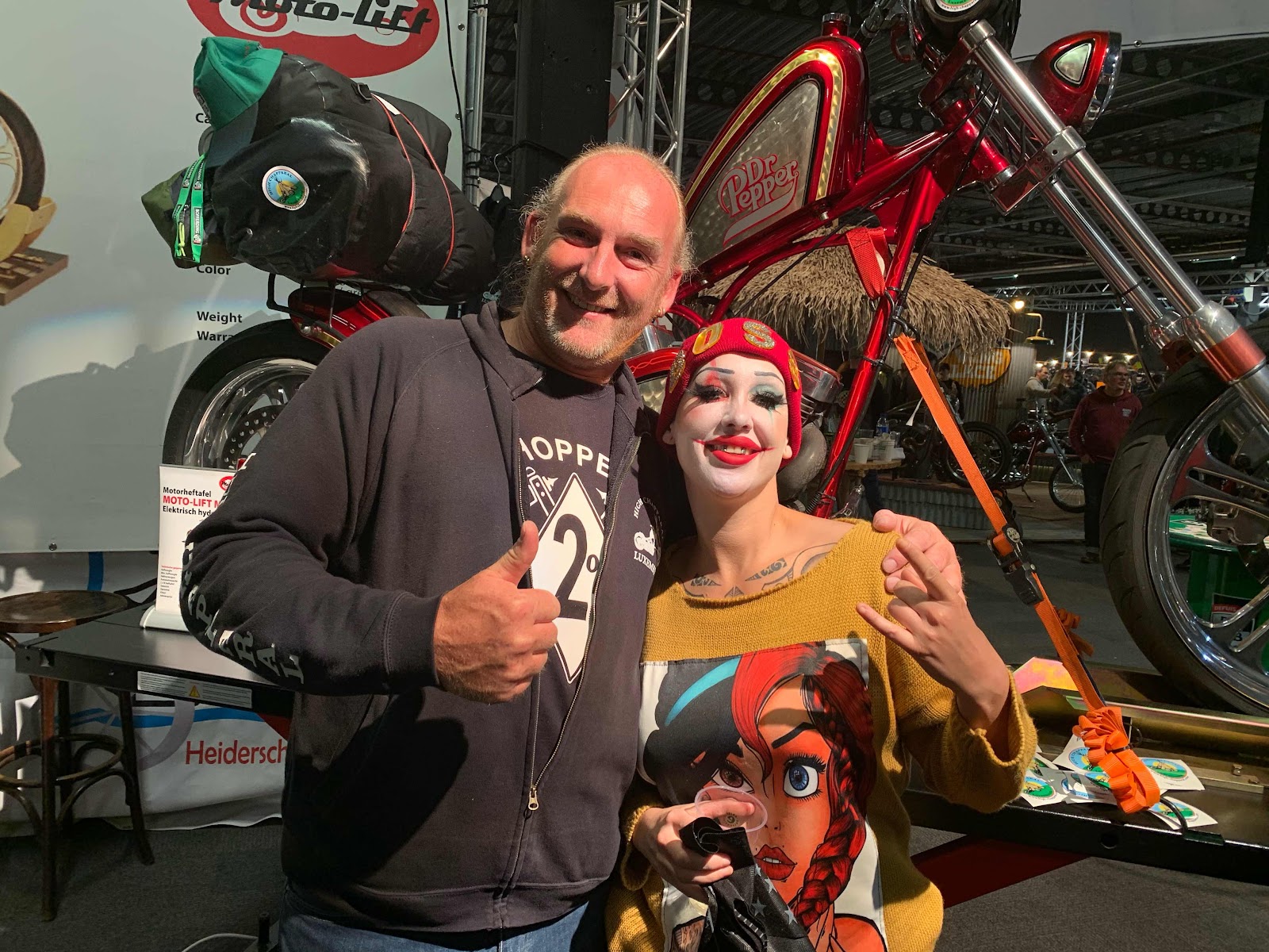 Bigtwin bikeshow. Met high chapparal en motorrijder.